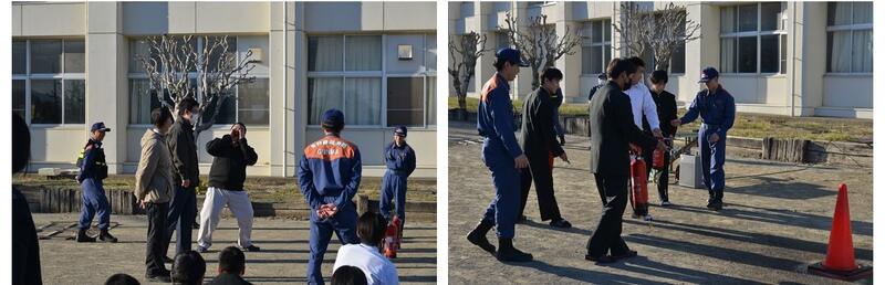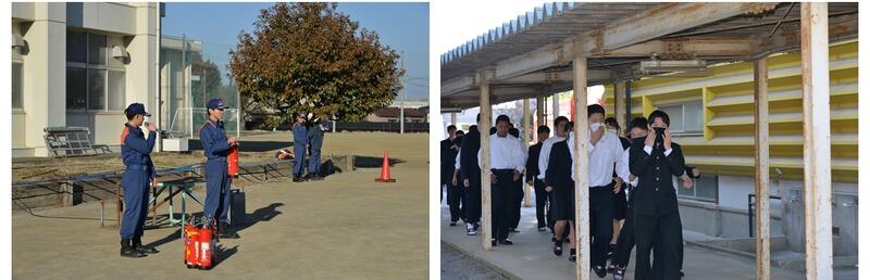 11月20日(木)に、多野藤岡広域市町村圏振興整備組合消防本部の方々の協力をいただき、第2回総合防災訓練が行われました。1階教室より火災が発生した想定で避難しました。その後消防署の方々から災害時の注意事項や消火器の使用方法についての講話がありました。